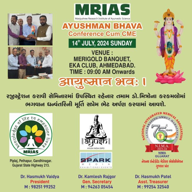 A one day scientific event under the auspices of National Integrated Medical Association (NIMA - GUJARAT) in Associtation with NIMA-CC will offer an excellent confluence of Ayurveda on a common platform.